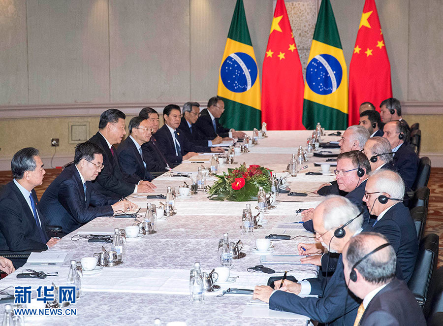 7月26日,國家主席習近平在南非約翰內(nèi)斯堡會見巴西總統(tǒng)特梅爾。 新華社記者 王曄 攝