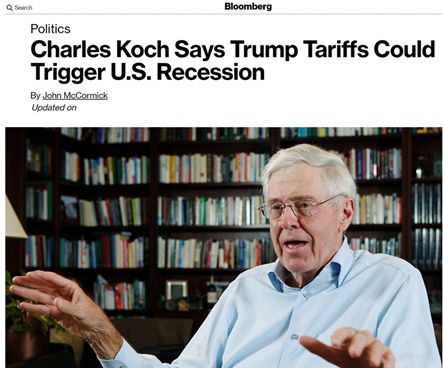 而在上周末剛剛結(jié)束的這么一場為期三天、并有數(shù)百人參加的活動上,科赫兄弟中年長的哥哥查爾斯·科赫就公開宣布他對美國政府的貿(mào)易戰(zhàn)行為很擔(dān)憂,認為美國對中國等多個國家揮舞的關(guān)稅大棒將令美國經(jīng)濟面臨“災(zāi)難性”的衰退風(fēng)險。