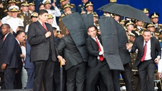 8月4日,在委內(nèi)瑞拉首都加拉加斯,安全人員保護總統(tǒng)馬杜羅。新華社發(fā)