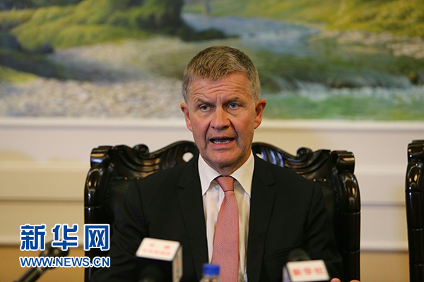 8月24日,在朝鮮平壤,聯(lián)合國(guó)副秘書(shū)長(zhǎng)兼環(huán)境規(guī)劃署執(zhí)行主任索爾海姆在記者會(huì)上發(fā)言。新華社記者 程大雨 攝