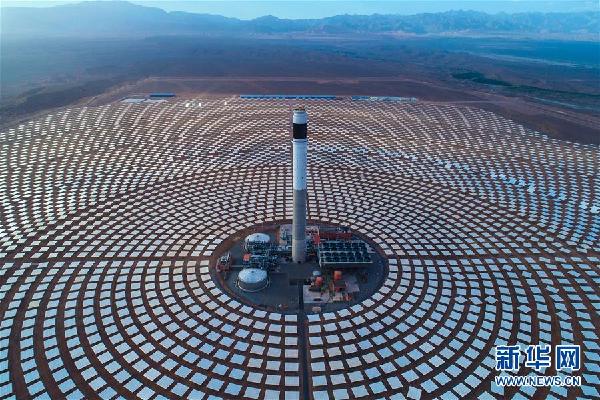 這是2018年6月7日在摩洛哥瓦爾扎扎特拍攝的努奧光熱電站項(xiàng)目三期工程(航拍照片)。從2015年起,中國(guó)電建集團(tuán)下屬的山東電建三公司在瓦爾扎扎特承建努奧光熱電站項(xiàng)目二期和三期工程。努奧光熱電站項(xiàng)目是目前全球規(guī)模最大的光熱電站項(xiàng)目。二期工程槽式光熱電站現(xiàn)已進(jìn)入商業(yè)運(yùn)行,三期塔式光熱電站也于近日順利實(shí)現(xiàn)首次并網(wǎng)目標(biāo)。待項(xiàng)目完全建成后,努奧光熱電站將為超過100萬(wàn)的摩洛哥家庭提供清潔能源,還可以把富余的電能出口到歐洲。 新華社發(fā)/山東電建三公司供圖