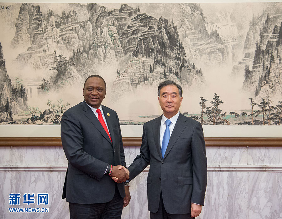 9月4日,全國政協(xié)主席汪洋在北京釣魚臺(tái)國賓館會(huì)見肯尼亞總統(tǒng)肯雅塔。 新華社記者 翟健嵐 攝