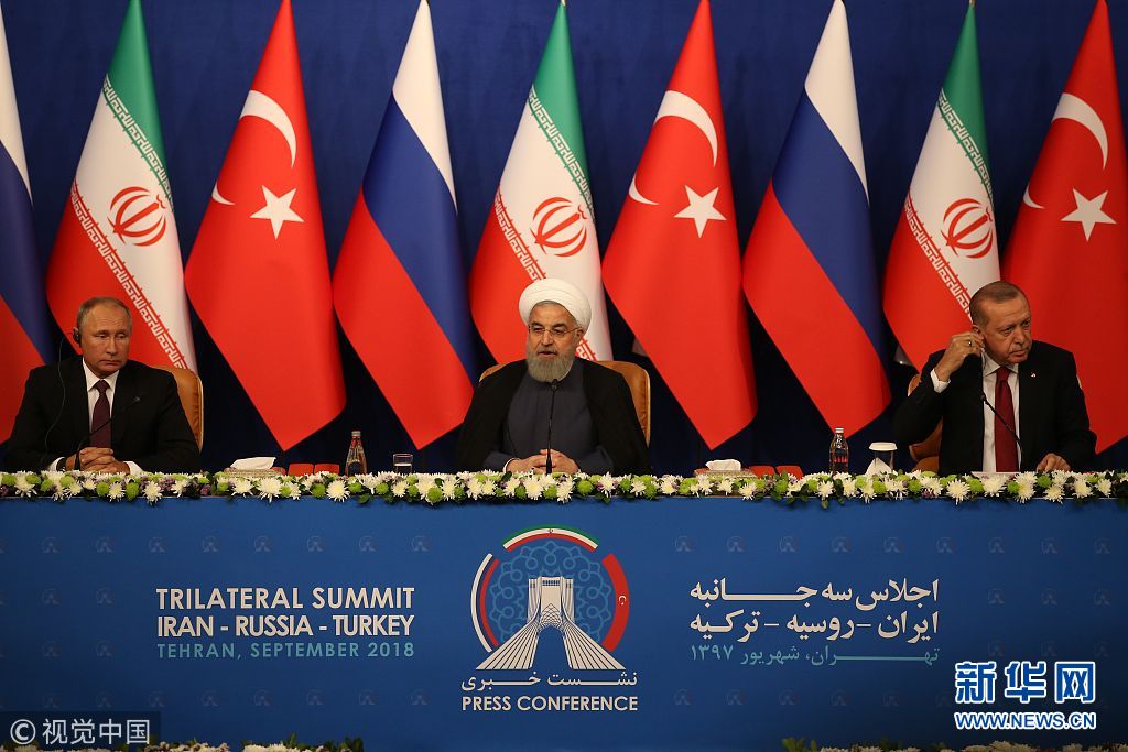 當(dāng)?shù)貢r(shí)間2018年9月7日,伊朗德黑蘭,當(dāng)日,俄羅斯、土耳其和伊朗三國(guó)首腦齊聚伊朗首都德黑蘭舉行峰會(huì),討論敘利亞局勢(shì)。(圖片來源:視覺中國(guó))