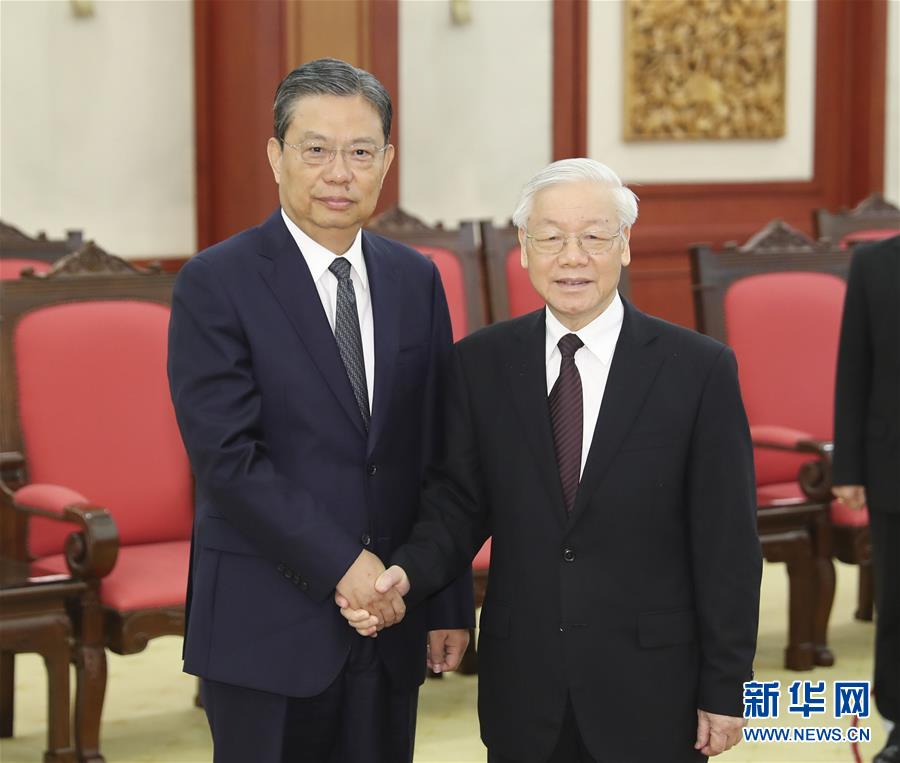 會見阮富仲時,趙樂際首先轉(zhuǎn)達(dá)了習(xí)近平總書記的親切問候。趙樂際說,在兩黨總書記親自引領(lǐng)下,兩黨兩國關(guān)系持續(xù)健康穩(wěn)定發(fā)展。我此訪就是落實兩黨總書記達(dá)成的重要共識,按照“十六字”方針和“四好”精神,加強(qiáng)戰(zhàn)略溝通,密切高層交往,促進(jìn)務(wù)實合作,推動中越全面戰(zhàn)略合作伙伴關(guān)系邁上新臺階。阮富仲請趙樂際轉(zhuǎn)達(dá)對習(xí)近平總書記的良好祝愿,誠摯感謝習(xí)近平總書記委托趙樂際同志代表中共中央吊唁越南國家主席陳大光。阮富仲表示,當(dāng)前越中關(guān)系處于歷史最好時期,中國的發(fā)展成就不僅造福中國人民,也對越南國家發(fā)展和越中關(guān)系發(fā)展發(fā)揮重要促進(jìn)作用。越方愿加強(qiáng)兩黨理論創(chuàng)新和實踐經(jīng)驗交流,全面有效落實高層共識,深化各領(lǐng)域合作,不斷豐富越中傳統(tǒng)友好合作關(guān)系的時代內(nèi)涵。