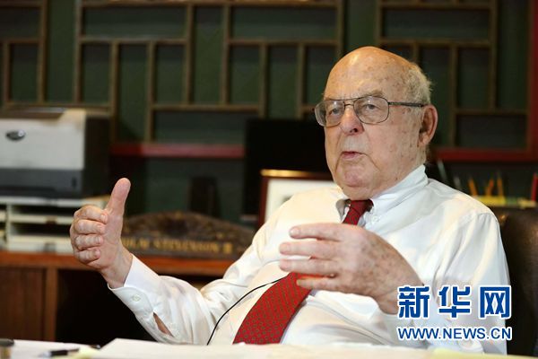 7月16日,美國前聯(lián)邦參議員斯蒂文森三世在芝加哥的家中接受新華社記者專訪。新華社記者汪平攝