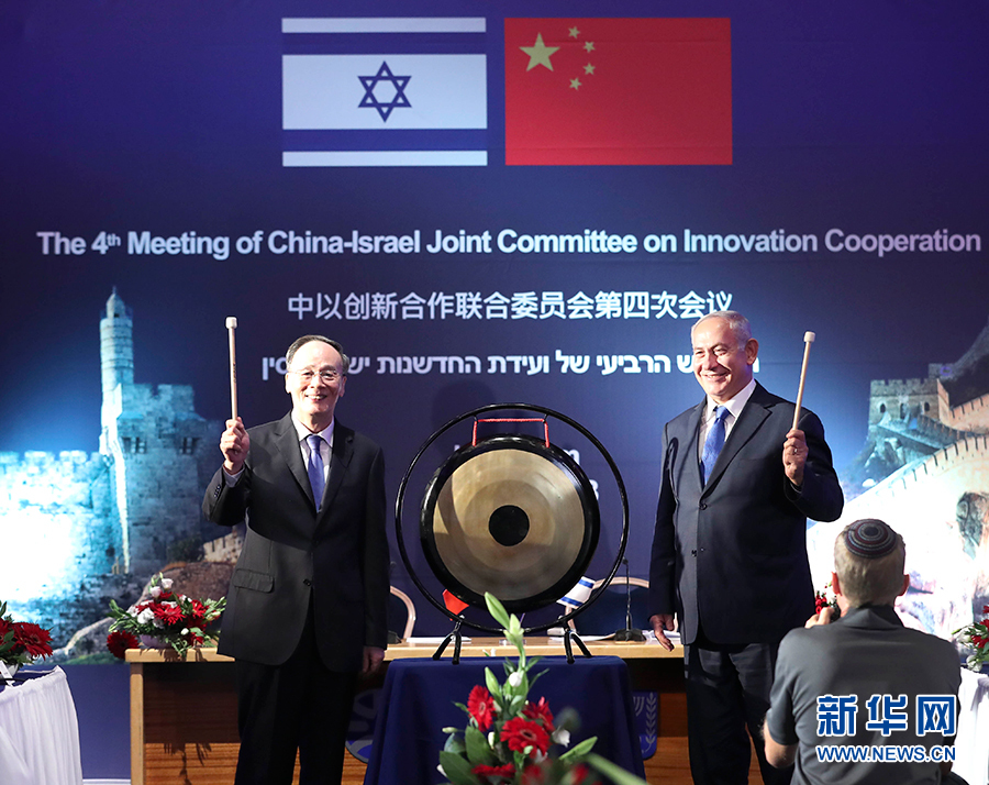 王岐山與內塔尼亞胡共同主持召開中以創(chuàng)新合作聯(lián)委會第四次會議。王岐山表示,中以創(chuàng)新合作理念契合、優(yōu)勢互補、潛力巨大、前景廣闊。近年來,兩國在基礎科學、現(xiàn)代農業(yè)、健康醫(yī)療、能源等領域的合作成果豐碩。創(chuàng)新永遠在路上,創(chuàng)新合作機制也永遠在路上。希望中以雙方深入總結以往合作的成績和經(jīng)驗,規(guī)劃未來合作的方向和路徑,進一步擴大交流往來,營造有利環(huán)境,在不斷發(fā)現(xiàn)問題、解決問題中,改進完善聯(lián)委會機制,推動兩國創(chuàng)新合作取得更多成果。內塔尼亞胡表示,以色列和中國都是富有創(chuàng)新精神的國家,兩國應在已經(jīng)取得的合作成果基礎上,開辟新領域,執(zhí)行新項目,推動兩國創(chuàng)新合作更好地造福兩國人民。會議聽取了兩國有關部門對過去三年雙方在科技、經(jīng)貿、農業(yè)、衛(wèi)生、交通等領域合作進展情況的報告和對下一階段各領域合作的設想和建議。王岐山和內塔尼亞胡共同簽署《中以創(chuàng)新合作行動計劃(2018-2021)》,并見證了其他7份中以合作文件的簽署。