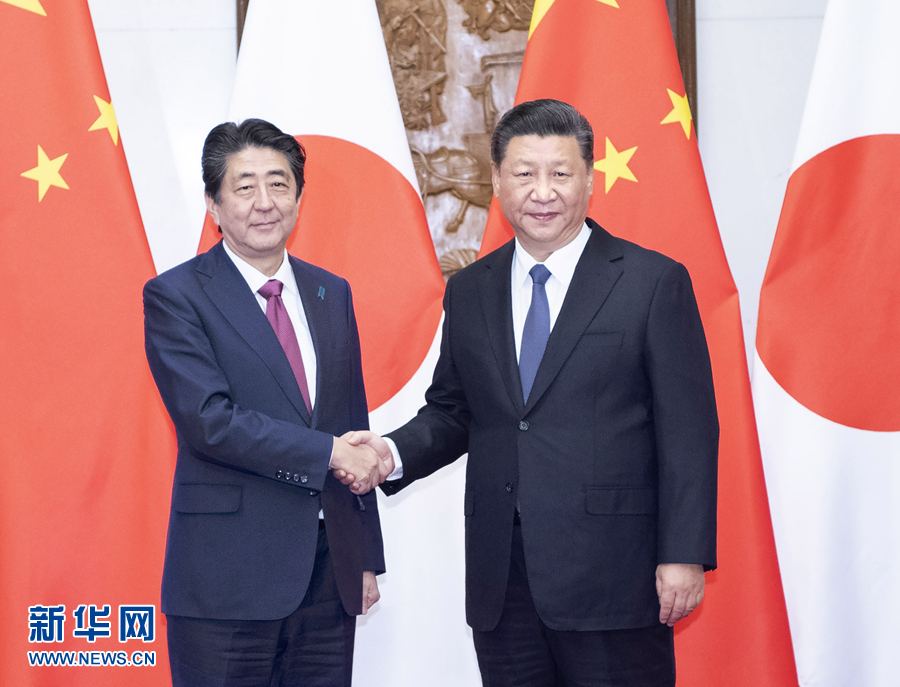 習(xí)近平歡迎安倍正式訪華,贊賞安倍近年來多次表明改善和發(fā)展中日關(guān)系的積極意愿。習(xí)近平指出,中日是近鄰,兩國利益高度交融。作為世界主要經(jīng)濟(jì)體和有重要影響的國家,中日關(guān)系長期健康穩(wěn)定發(fā)展,符合兩國人民根本利益,也是本地區(qū)和國際社會普遍期待。今年是中日和平友好條約締結(jié)40周年。1978年,兩國老一輩領(lǐng)導(dǎo)人締結(jié)和平友好條約,以法律形式確定了兩國持久和平友好大方向,為雙方開展互利合作、謀求共同發(fā)展以及妥善處理歷史、臺灣等敏感問題提供了堅(jiān)實(shí)遵循和保障。在雙方共同努力下,當(dāng)前中日關(guān)系重回正常軌道,重現(xiàn)積極勢頭。這值得雙方共同珍惜。雙方要遵循中日四個(gè)政治文件確立的各項(xiàng)原則,堅(jiān)持和平友好大方向,持續(xù)深化互利合作,推動(dòng)中日關(guān)系在重回正軌基礎(chǔ)上得到新的發(fā)展。