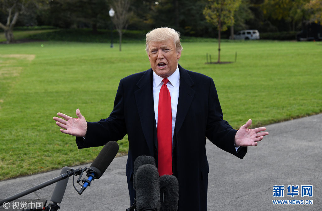 當(dāng)?shù)貢r(shí)間2018年10月31日,美國(guó)華盛頓,美國(guó)總統(tǒng)特朗普啟程前往佛羅里達(dá)州出席競(jìng)選集會(huì),在白宮南草坪發(fā)表講話。特朗普稱,計(jì)劃部署在美墨邊境的現(xiàn)役軍人數(shù)量或增加至15000人,以嚴(yán)防來(lái)勢(shì)洶洶的“大篷車”移民。(圖片來(lái)源:視覺(jué)中國(guó))