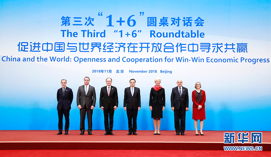新華社北京11月6日電(記者鄭明達(dá))國(guó)務(wù)院總理李克強(qiáng)6日下午在釣魚臺(tái)國(guó)賓館同世界銀行行長(zhǎng)金墉、國(guó)際貨幣基金組織總裁拉加德、世界貿(mào)易組織總干事阿澤維多、經(jīng)濟(jì)合作與發(fā)展組織秘書長(zhǎng)古里亞、金融穩(wěn)定理事會(huì)主席卡尼和國(guó)際勞工組織副總干事格林菲爾德舉行第三次“1+6”圓桌對(duì)話會(huì)。會(huì)議圍繞“促進(jìn)中國(guó)與世界經(jīng)濟(jì)在開放合作中尋求共贏”的主題,就當(dāng)前世界經(jīng)濟(jì)走勢(shì)、維護(hù)多邊貿(mào)易體制等議題深入交流。