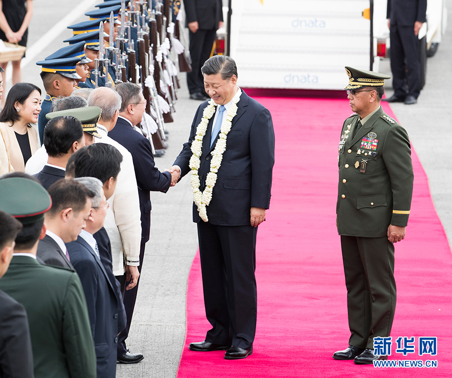 11月20日,國家主席習(xí)近平抵達(dá)馬尼拉,開始對菲律賓共和國進行國事訪問。這是習(xí)近平在機場受到菲律賓政府高級官員熱情迎接。 新華社記者 黃敬文 攝