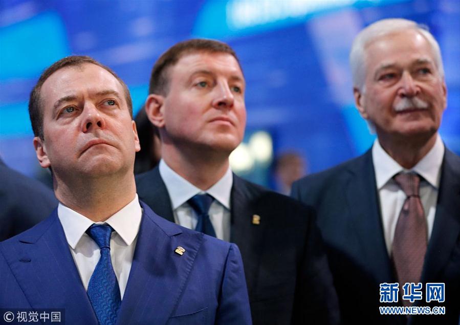 當(dāng)?shù)貢r(shí)間2018年12月8日,俄羅斯莫斯科,俄羅斯執(zhí)政黨“統(tǒng)一俄羅斯黨”年度會議舉行,俄羅斯總統(tǒng)普京和總理梅德韋杰夫出席會議。(圖片來源:視覺中國)