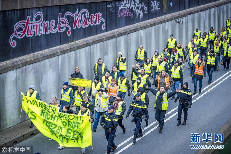 當?shù)貢r間12月15日,荷蘭馬斯特里赫特,當?shù)乇l(fā)“黃背心”抗議活動。(圖片來源:視覺中國)