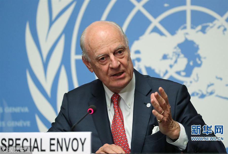 當(dāng)?shù)貢r(shí)間2018年12月18日,瑞士日內(nèi)瓦,聯(lián)合國秘書長(zhǎng)敘利亞問題特使德米斯圖拉參加討論組建敘利亞憲法委員會(huì)問題的會(huì)議并出席新聞發(fā)布會(huì)。(圖片來源:視覺中國)