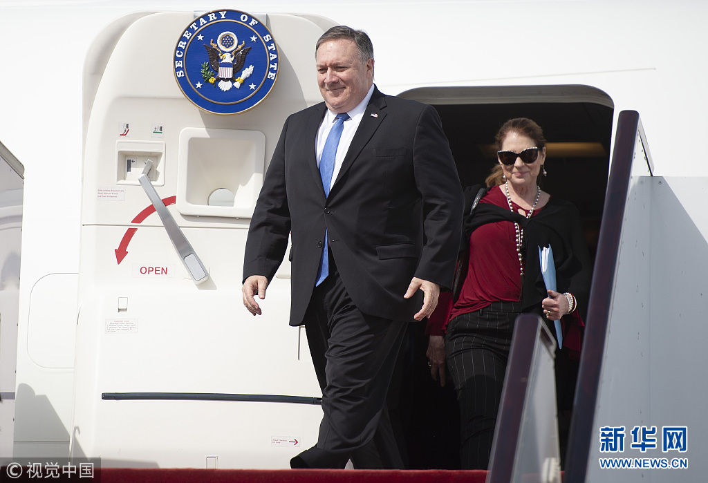 2019年1月13日,卡塔爾多哈,美國(guó)國(guó)務(wù)卿邁克·蓬佩奧訪問卡塔爾。蓬佩奧與卡塔爾副首相兼外交大臣穆罕默德在多哈的喜來(lái)登大酒店簽署了諒解備忘錄和意向聲明并舉行聯(lián)合記者會(huì)。蓬佩奧表示,兩國(guó)外交部門領(lǐng)導(dǎo)人當(dāng)天簽署了一份諒解備忘錄,將擴(kuò)建和改造烏代德美國(guó)空軍基地。(圖片來(lái)源:視覺中國(guó))