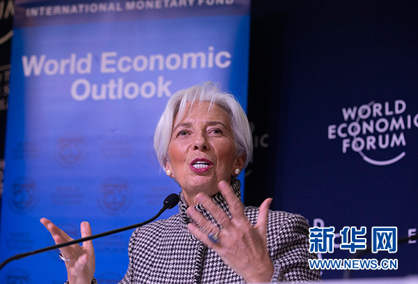 1月21日,在瑞士達沃斯,國際貨幣基金組織總裁拉加德在記者會上講話。 新華社記者 徐金泉 攝