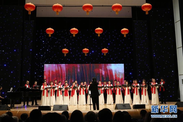 1月23日,在白俄羅斯首都明斯克,中國中央歌劇院的藝術(shù)家們在“歡樂春節(jié)”歌舞晚會上演唱。新華社記者 魏忠杰 攝