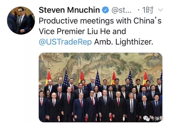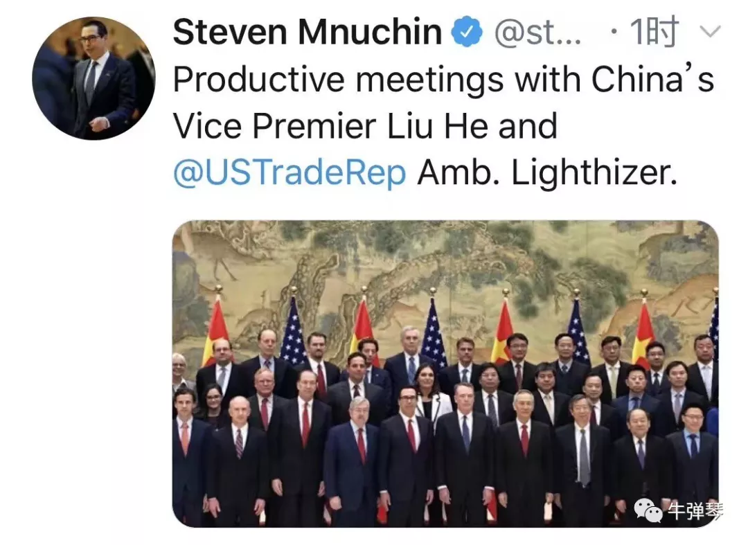 很有意思的,這次磋商一結(jié)束,美國財(cái)長姆努欽立刻發(fā)了一條推特,上面寫道:和劉鶴副總理、萊特希澤大使進(jìn)行了富有建設(shè)性的會議。