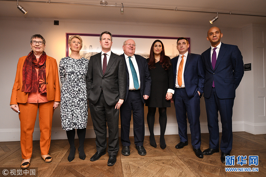 當?shù)貢r間2019年2月18日,英國倫敦,英國反對黨工黨的7名議員宣布從工黨辭職,他們將組成一個新的國會議員獨立團體,以抗議該黨對英國“脫歐”的支持,以及未能根除反猶太主義。(圖片來源:視覺中國)