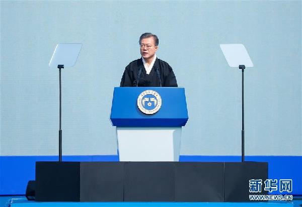 3月1日,韓國(guó)總統(tǒng)文在寅在首爾舉行的“三一運(yùn)動(dòng)”100周年大會(huì)上發(fā)表講話。 韓國(guó)總統(tǒng)文在寅1日在首爾光化門(mén)廣場(chǎng)出席紀(jì)念“三一運(yùn)動(dòng)”100周年大會(huì)時(shí)發(fā)表講話表示,韓國(guó)將力推構(gòu)建“新半島體系”,實(shí)現(xiàn)韓朝之間共建“和平合作共同體”和“經(jīng)濟(jì)合作共同體”。新華社記者 王婧嬙 攝