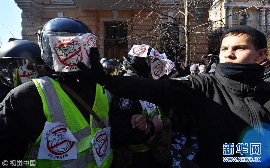 當?shù)貢r間2019年3月9日,烏克蘭基輔,烏克蘭民族主義政黨的激進分子集會要求調查烏克蘭武裝部隊官員的腐敗問題,與警方發(fā)生激烈沖突。(圖片來源:視覺中國)