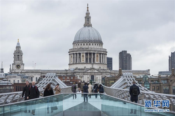這是3月6日,在英國(guó)倫敦,人們從通往倫敦金融城的千禧橋上走過。 新華社發(fā)(史蒂芬·程 攝)