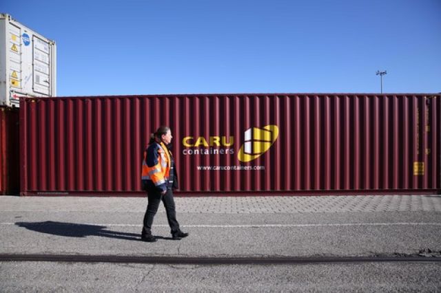 這是2019年3月5日,裝載有中國(guó)商品的集裝箱從中國(guó)武漢發(fā)出后,經(jīng)由中歐班列運(yùn)輸?shù)诌_(dá)法國(guó)里昂。新華社記者 唐霽 攝
