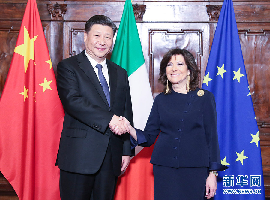 3月22日,國家主席習近平在羅馬會見意大利參議長卡塞拉蒂。(新華社記者姚大偉攝)