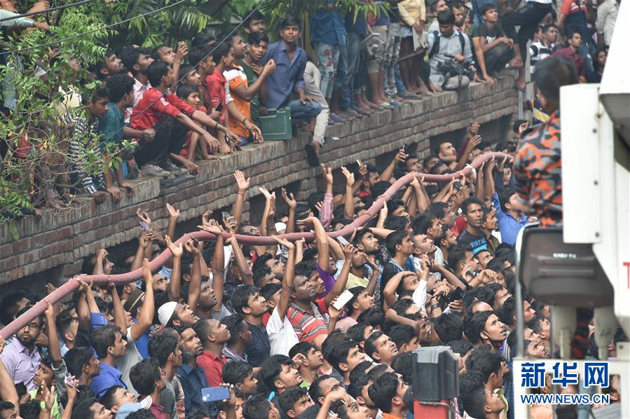 3月28日,在孟加拉國首都達卡,消防人員解救被困民眾。 新華社發(fā)(薩利姆·禮薩攝)