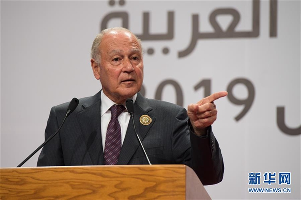 3月31日,在突尼斯首都突尼斯市,阿拉伯國家聯(lián)盟秘書長蓋特在記者招待會(huì)上講話。新華社記者 孟濤 攝