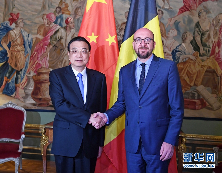 新華社布魯塞爾4月9日電(記者翟偉 白潔)當(dāng)?shù)貢r(shí)間4月9日上午,國務(wù)院總理李克強(qiáng)在布魯塞爾埃格蒙宮會(huì)見比利時(shí)首相米歇爾。