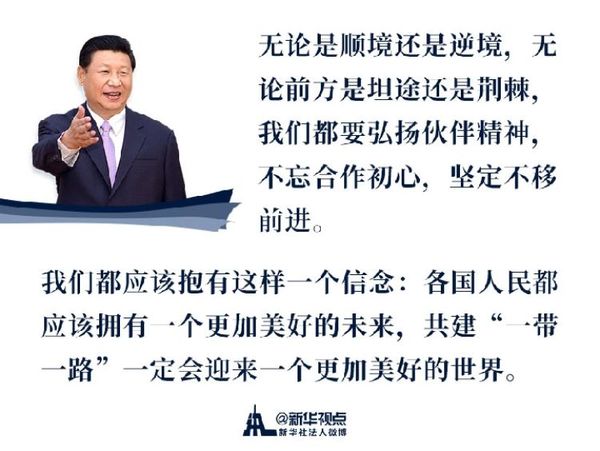 “我們要乘勢(shì)而上、順勢(shì)而為,推動(dòng)‘一帶一路’建設(shè)行穩(wěn)致遠(yuǎn),邁向更加美好的未來?!绷?xí)主席在首屆高峰論壇上這樣說。