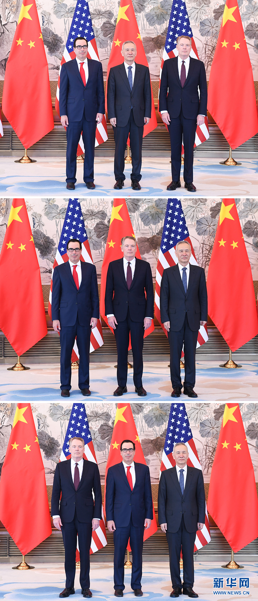 4月30日至5月1日,中共中央政治局委員、國(guó)務(wù)院副總理、中美全面經(jīng)濟(jì)對(duì)話(huà)中方牽頭人劉鶴與美國(guó)貿(mào)易代表萊特希澤、財(cái)政部長(zhǎng)姆努欽在北京舉行第十輪中美經(jīng)貿(mào)高級(jí)別磋商(拼版照片)。 新華社記者申宏、翟健嵐攝