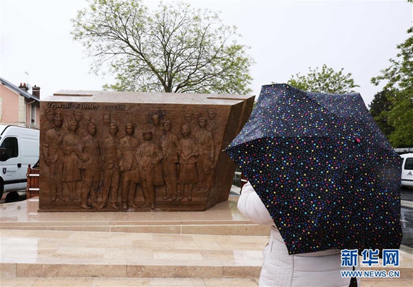 5月4日,在距法國(guó)巴黎100多公里的小城蒙塔日,《百年豐碑》大型雕塑被安放在火車(chē)站前的鄧小平廣場(chǎng)。新華社記者 高靜 攝