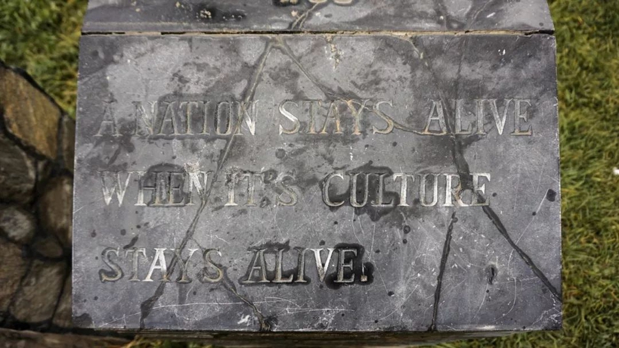 圖為鐫刻在阿富汗國家博物館門前的標(biāo)語。(圖片來自網(wǎng)絡(luò))