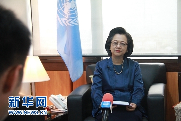 5月14日,聯(lián)合國亞洲及太平洋經(jīng)濟(jì)社會委員會執(zhí)行秘書阿米達(dá)·阿利斯夏巴納在泰國曼谷接受新華社記者采訪。 聯(lián)合國亞洲及太平洋經(jīng)濟(jì)社會委員會執(zhí)行秘書阿米達(dá)·阿利斯夏巴納日前在曼谷接受新華社記者采訪時說,70年來中國取得了全方位的發(fā)展成就,并給亞太地區(qū)帶來積極影響。 新華社發(fā)