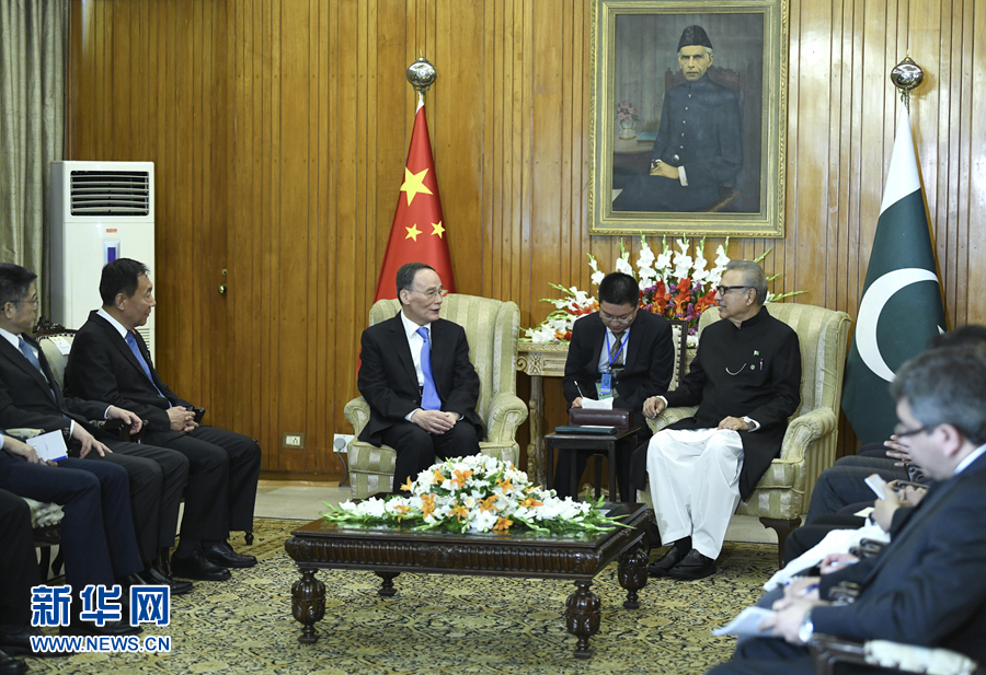 會見阿爾維時,王岐山表示,中巴是“鐵桿”朋友。建交68年來,無論國際風(fēng)云如何變幻,兩國始終在涉及彼此核心利益問題上相互尊重、相互支持,結(jié)下了最真誠的友誼。近年來,中巴關(guān)系發(fā)展勢頭良好,雙方政治互信進(jìn)一步增強(qiáng),務(wù)實(shí)合作不斷深化,人文交往更加活躍。中巴經(jīng)濟(jì)走廊建設(shè)取得實(shí)實(shí)在在的成果,已成為新時期中巴友好合作的重要標(biāo)志。我這次訪巴,就是再次向兩國人民和世界發(fā)出中巴是全天候戰(zhàn)略合作伙伴的訊號。中方愿同巴方加強(qiáng)各領(lǐng)域、各層次、全方位合作,讓中巴友好更好地惠及兩國和兩國人民,打造新時代更緊密的中巴命運(yùn)共同體。