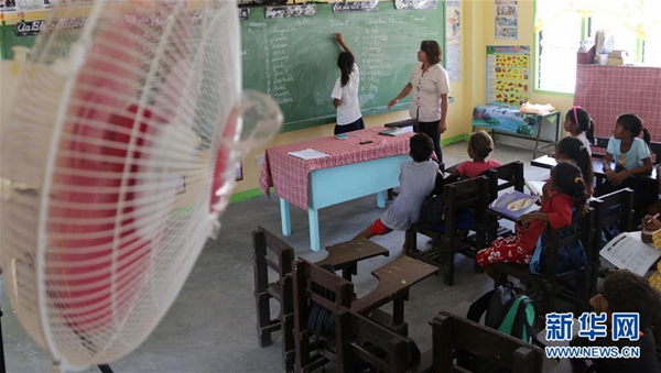 菲律賓中小學(xué)6月開始新學(xué)年。坐在明亮涼爽的教室中,巴利瓦特小學(xué)的孩子們十分興奮?!艾F(xiàn)在有了電燈、電風(fēng)扇,孩子們終于不用渾身濕漉漉地趴在書桌上費(fèi)力讀書了?!苯處煱@荨たㄍ呒铀拐f。