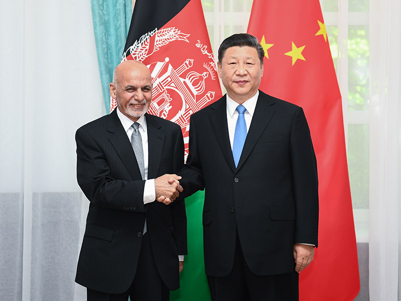 6月13日,國(guó)家主席習(xí)近平在比什凱克會(huì)見(jiàn)阿富汗總統(tǒng)加尼。新華社記者 謝環(huán)馳 攝