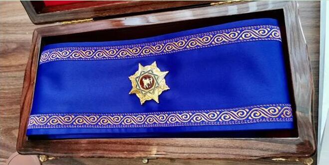 這就是授予習(xí)近平主席的勛章?!艾敿{斯”勛章是吉爾吉斯斯坦國(guó)家最高獎(jiǎng)?wù)?,由吉爾吉斯斯坦總統(tǒng)授予,分三個(gè)等級(jí),一級(jí)為最高等級(jí)。新華社記者 丁林 攝