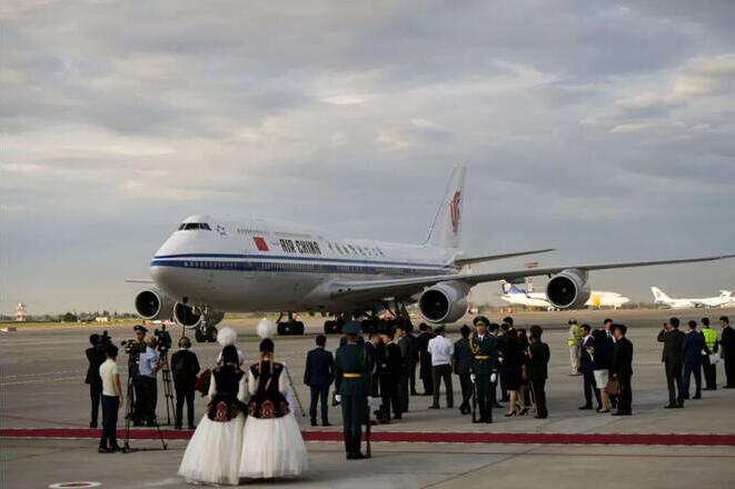 首都比什凱克的國(guó)際機(jī)場(chǎng)也以“瑪納斯”命名。12日傍晚,晚霞中的瑪納斯國(guó)際機(jī)場(chǎng),習(xí)近平主席步出專機(jī)艙門,與熱情迎接的熱恩別科夫總統(tǒng)雙手緊握在一起。