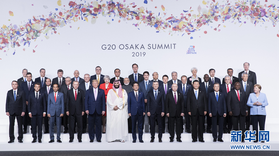 6月28日,二十國集團領導人第十四次峰會在日本大阪舉行。國家主席習近平出席并發(fā)表題為《攜手共進,合力打造高質(zhì)量世界經(jīng)濟》的重要講話。這是習近平同其他與會領導人合影。 新華社記者 黃敬文 攝