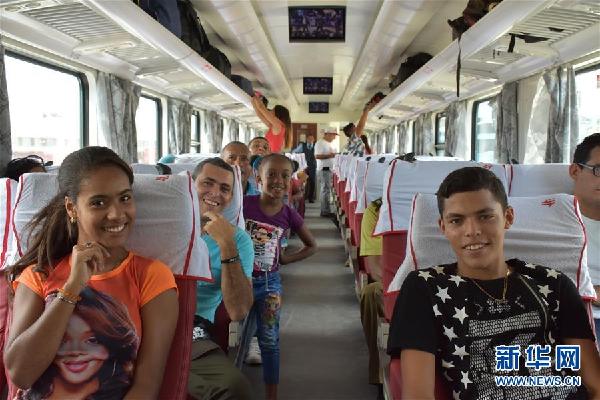 7月13日,在古巴首都哈瓦那,乘客們坐在一列由中國(guó)設(shè)計(jì)并生產(chǎn)的鐵路客車組成的列車上。新華社記者 朱婉君 攝