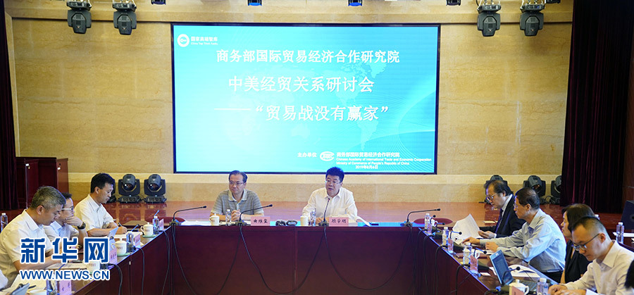 8月6日,主題為“貿(mào)易戰(zhàn)沒有贏家”的“中美經(jīng)貿(mào)關(guān)系研討會”在商務(wù)部國際貿(mào)易經(jīng)濟(jì)合作研究院舉行。新華社記者 金良快 攝