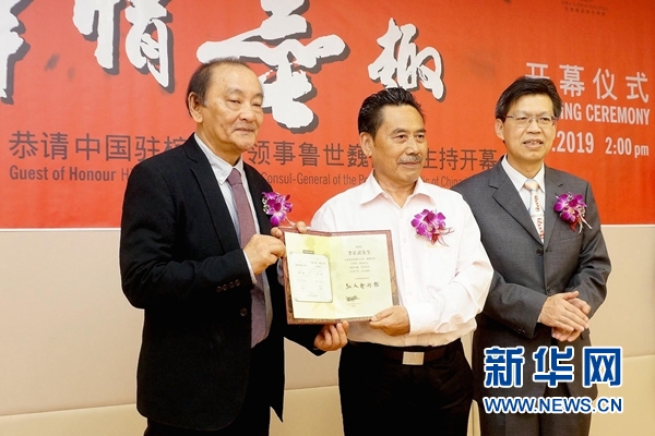 主辦方代表向李正武(中)頒發(fā)畫展證書。王大瑋 攝