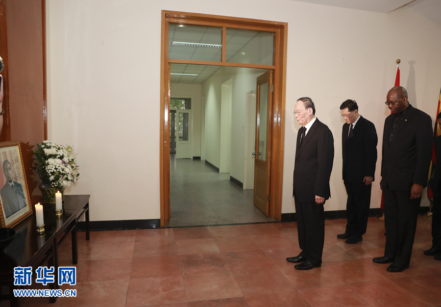 王岐山在穆加貝遺像前肅立默哀,并在吊唁簿上題詞,代表中國政府和人民對穆加貝的逝世表示最深切的哀悼,向津巴布韋政府和人民以及穆加貝的親屬表示最誠摯的慰問。王岐山表示,穆加貝是津巴布韋和非洲杰出政治家和民族解放運動領(lǐng)導(dǎo)人,為推動中津、中非友好作出了卓越貢獻(xiàn)。中方珍視中津傳統(tǒng)友誼,愿同津巴布韋政府和人民一道,推動中津全面戰(zhàn)略合作伙伴關(guān)系不斷向前發(fā)展。相信在姆南加古瓦總統(tǒng)領(lǐng)導(dǎo)下,津巴布韋人民一定會化悲痛為力量,在實現(xiàn)國家穩(wěn)定和建設(shè)發(fā)展道路上不斷取得新的更大成就。