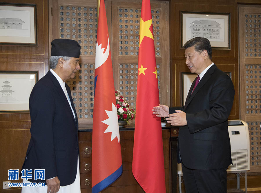 新華社加德滿都10月12日電(記者孫奕 南辰)國家主席習(xí)近平12日在加德滿都下榻飯店會見尼泊爾大會黨主席德烏帕。