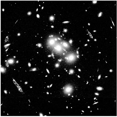 以銀河系為例,目前銀河處在一個由20多個星系組成的集體中,而這又是本超星系團延伸出的星系聯(lián)合體的一部分。星系團的結(jié)構(gòu)一級一級往上,一直上升到5億光年的尺度。隨著考察尺度的增加,其內(nèi)平均物質(zhì)密度的起伏不斷減小。在接近觀測極限的尺度上,平均物質(zhì)密度起伏不到0.1%。