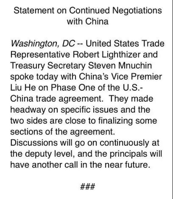 10月11日的中美經(jīng)貿(mào)高級別磋商結(jié)束后,雙方經(jīng)貿(mào)團隊溝通一直緊鑼密鼓爭分奪秒地展開。
