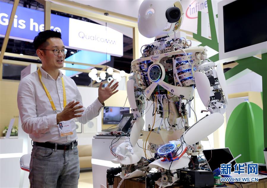11月3日,科技生活展區(qū)的德國英飛凌公司的機器人Roboy已完成調(diào)試,它將在展會上和觀眾進行多項有趣互動。當日,第二屆中國國際進口博覽會各場館的布展工作基本就緒,部分展商在對展品進行最后調(diào)整。新華社記者劉穎攝