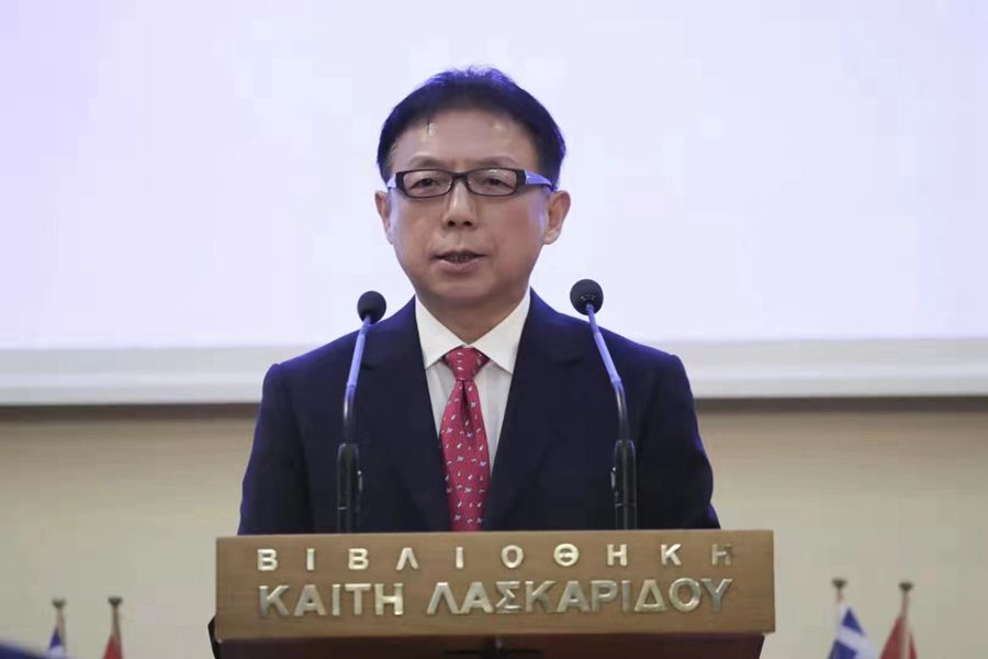 中國駐希臘大使章啟月在研討會上致辭。中國日報記者 匡林華 攝